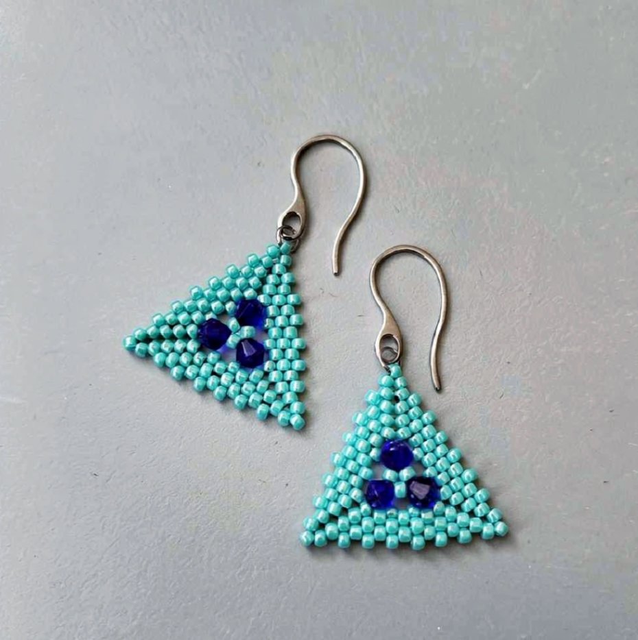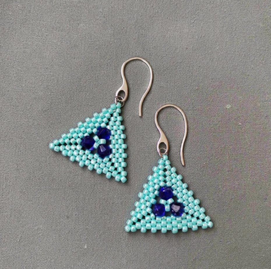 Efektowne kolczyki utkane ręcznie pracochłonną metodą beadingu ze szklanych japońskich koralików TOHO oraz kryształków wysokiej jakości.