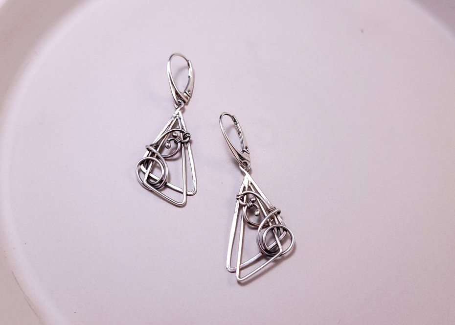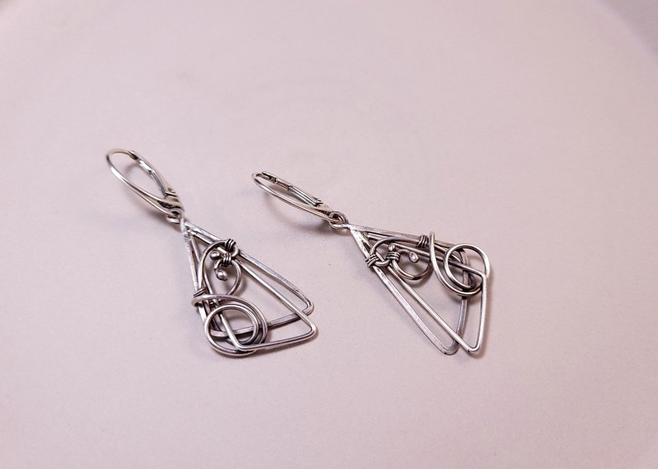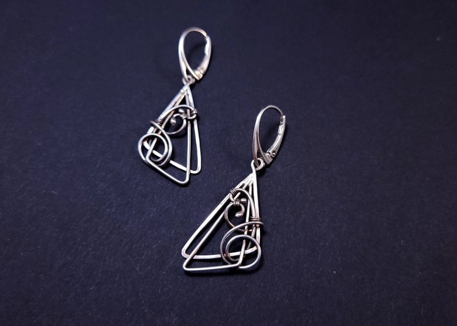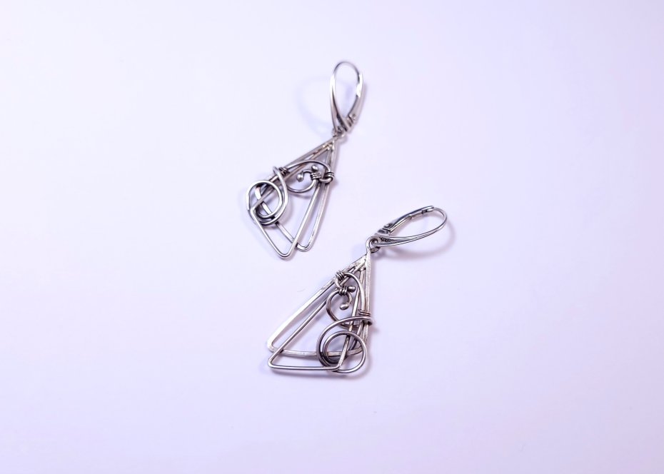Każda para powstaje z pojedynczego drutu formowanego ręcznie, dlatego kolczyki są unikatem — nie istnieją dwie identyczne sztuki.