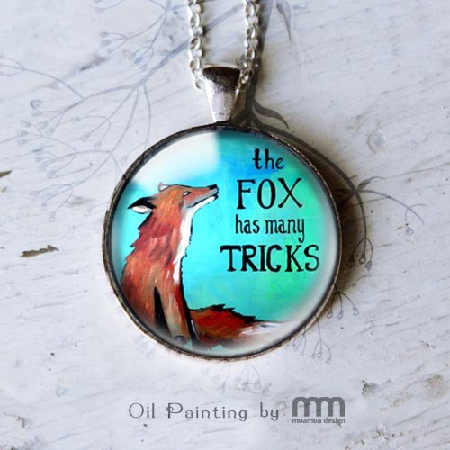 Naszyjnik Tricky FOx to romantyczne, nostalgiczne i kobiece malutkie dzieło sztuki. Obrazek pod szkiełkiem to autorska grafika.