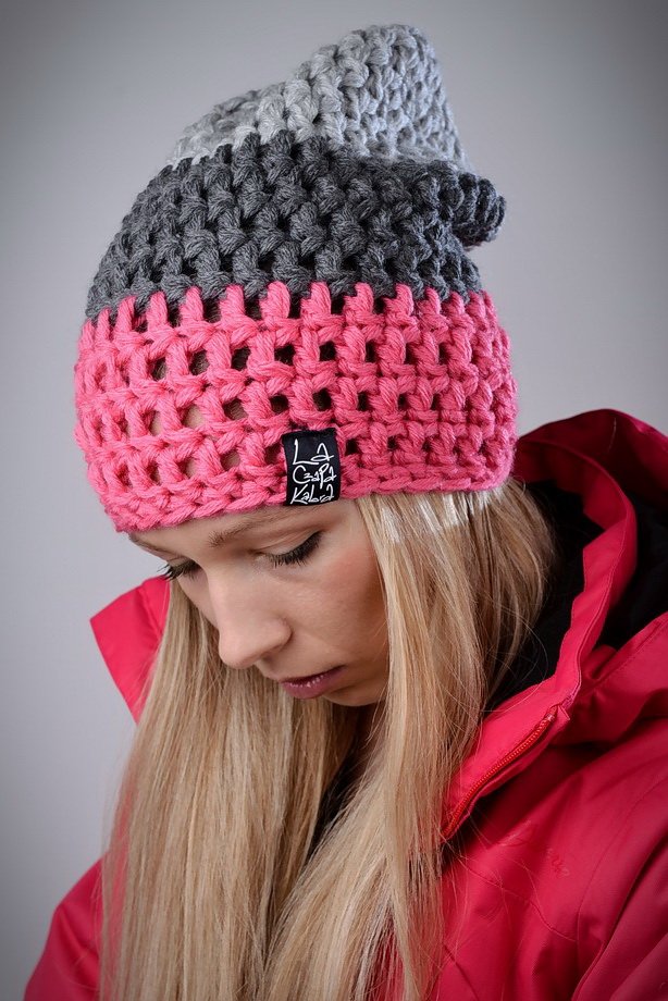 Model Triquence - czapka długa, grubo tkana, trzy kolory. Mięciutka, mięsista i ażurowa :)