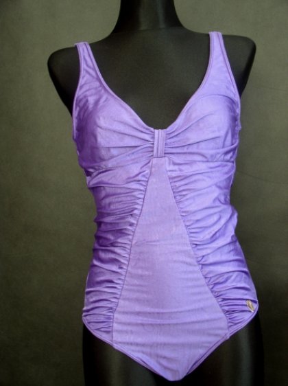 Strój kąpielowy firmy TRIUMPH.Rozmiar 40.Materiał syntetyk+elastan.Wielkość miseczek C.Stanik bez usztywnienia.Odcięty pod biustem.,na środku zmarszczony.Szew przykryty paseczkiem.Przez środek klin do którego przyszyte są zmarszczone boki.Tył mocno wycięty.Stan bardzo dobry-.