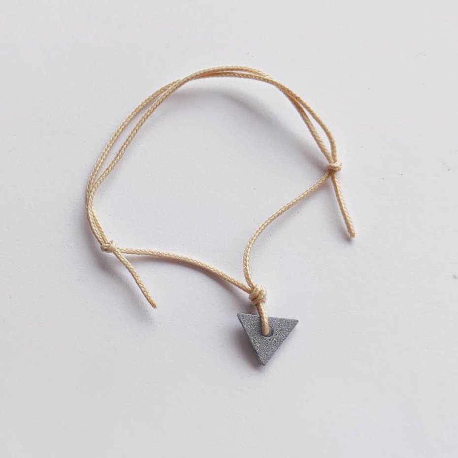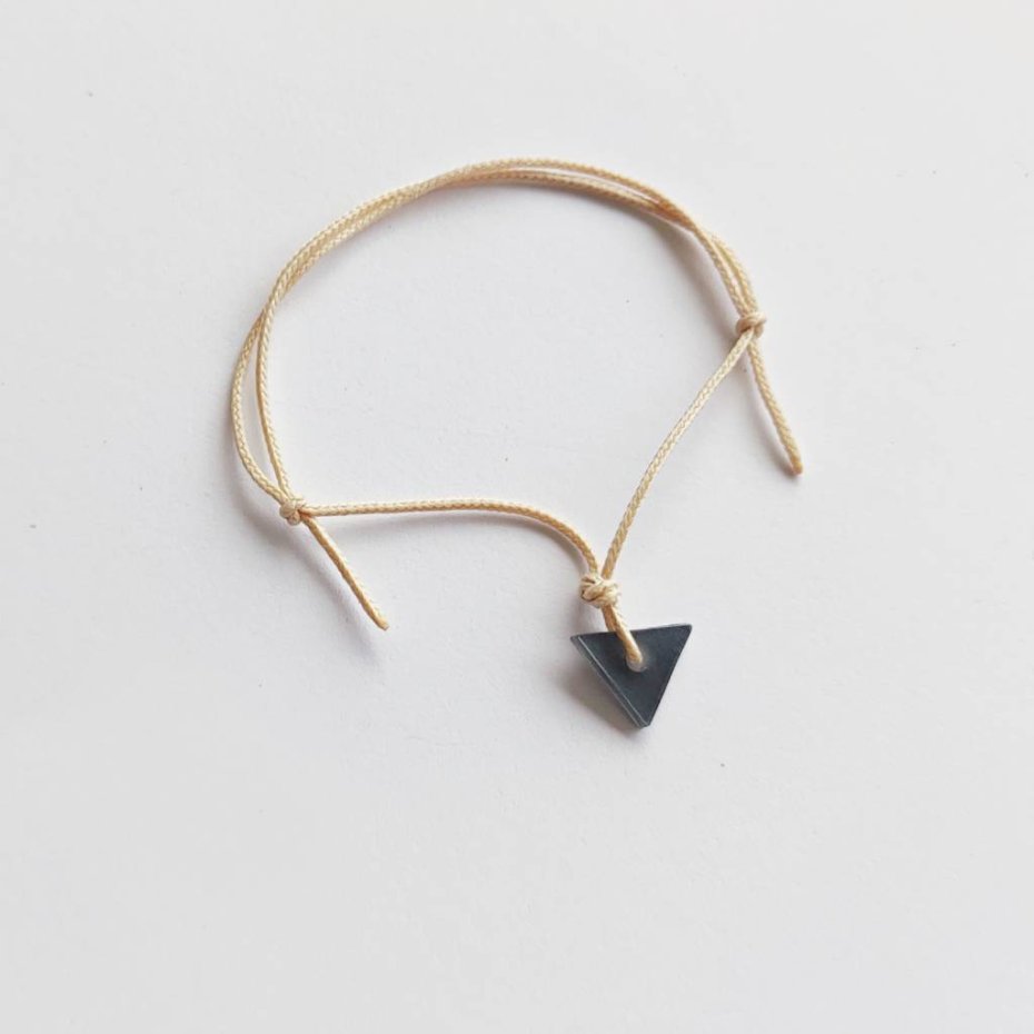 TRÓJKĄT bransoletka - uroczy dodatek. Idealna dla kobiet ceniące ładną oraz oryginalna biżuterię. Bransoletka wykonana jest z tworzywo sztuczne, ozdobny sznurek. Długość zawieszki - ok. 1 cm. Szerokość zawieszki - ok. 1 cm. Zdjęcia wykonane jest z dwóch stron zawieszki)