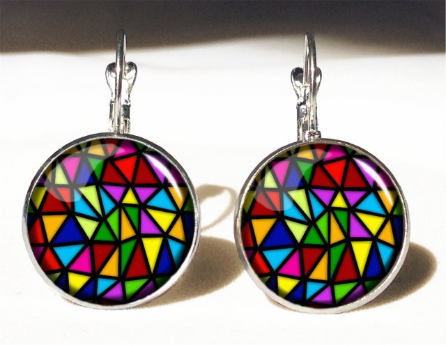 Ręcznie robione kolczyki wiszące z wysokiej jakości grafiką pokrytą wypukłym, powiększającym szkiełkiem.