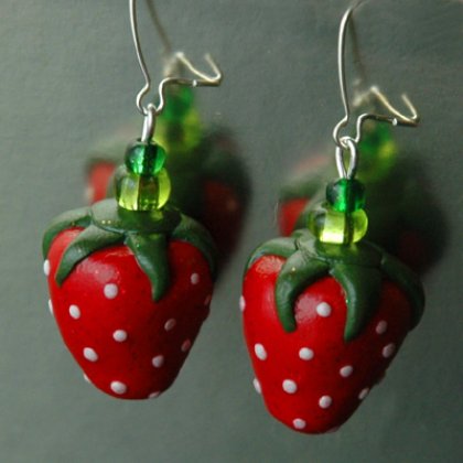 Masa termoutwardzalna, koraliki szklane i antyalergiczne bigle. Długość całkowita razem z biglami to ok. 4 cm.