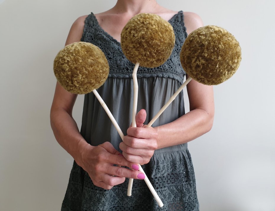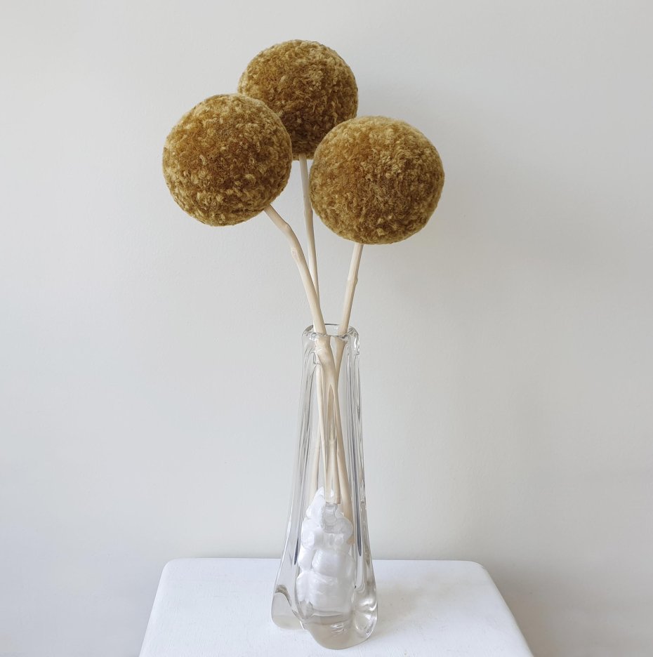 Trzy duże kwiaty z pomponów to niezwykła dekoracja, która doskonale odnajdzie się w różnych aranżacjach. Możesz je zestawić z suszonymi lub sztucznymi kwiatami, tworząc niepowtarzalną kompozycję, albo pozwolić im zabłysnąć jako samodzielna ozdoba. Miękkie, puchate formy dodają wnętrzu przytulności i odrobiny fantazji, sprawiając, że staną się wyjątkowym elementem wystroju, który przyciągnie spojrzenia i doda charakteru każdemu pomieszczeniu.