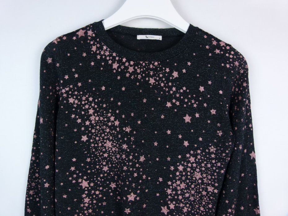 Kolor - czarny z dodatkiem błyszczącej nitki, różowe gwiazdki