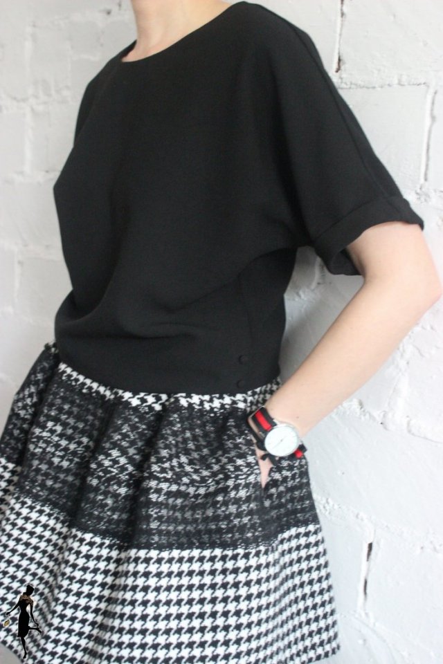 Bluzka czarna. Firma TU. Rozmiar z metki 38/M. Wymiary: obwód biustu-58cmx2 (mierzony od pachy do pachy), obwód pasa-47cmx2, długość bluzki-59cm. Skład materiału: 96% poliester, 4% elastan.
