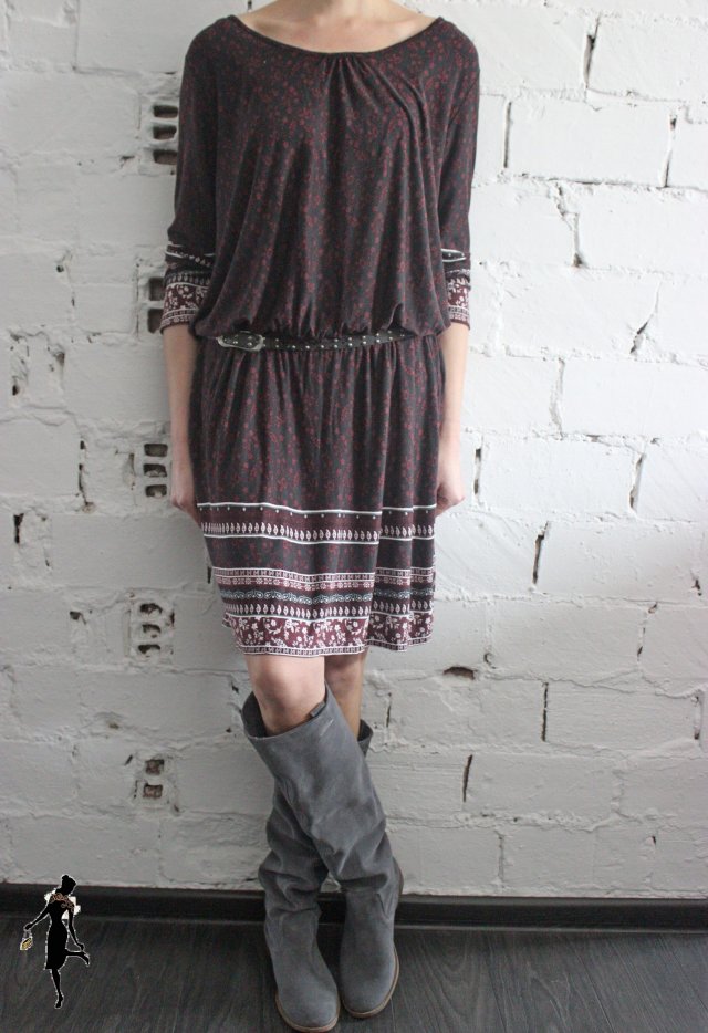 Sukienka boho. Firma TU. Rozmiar z metki 48/4XL. Wymiary: obwód biustu-60cmx2 (mierzony od pachy do pachy), obwód pasa-65cmx2 (regulowany gumką), obwód bioder-66cmx2, długość rękawa-50cm, długość sukienki-105cm. Skład materiału: 100% wiskoza.