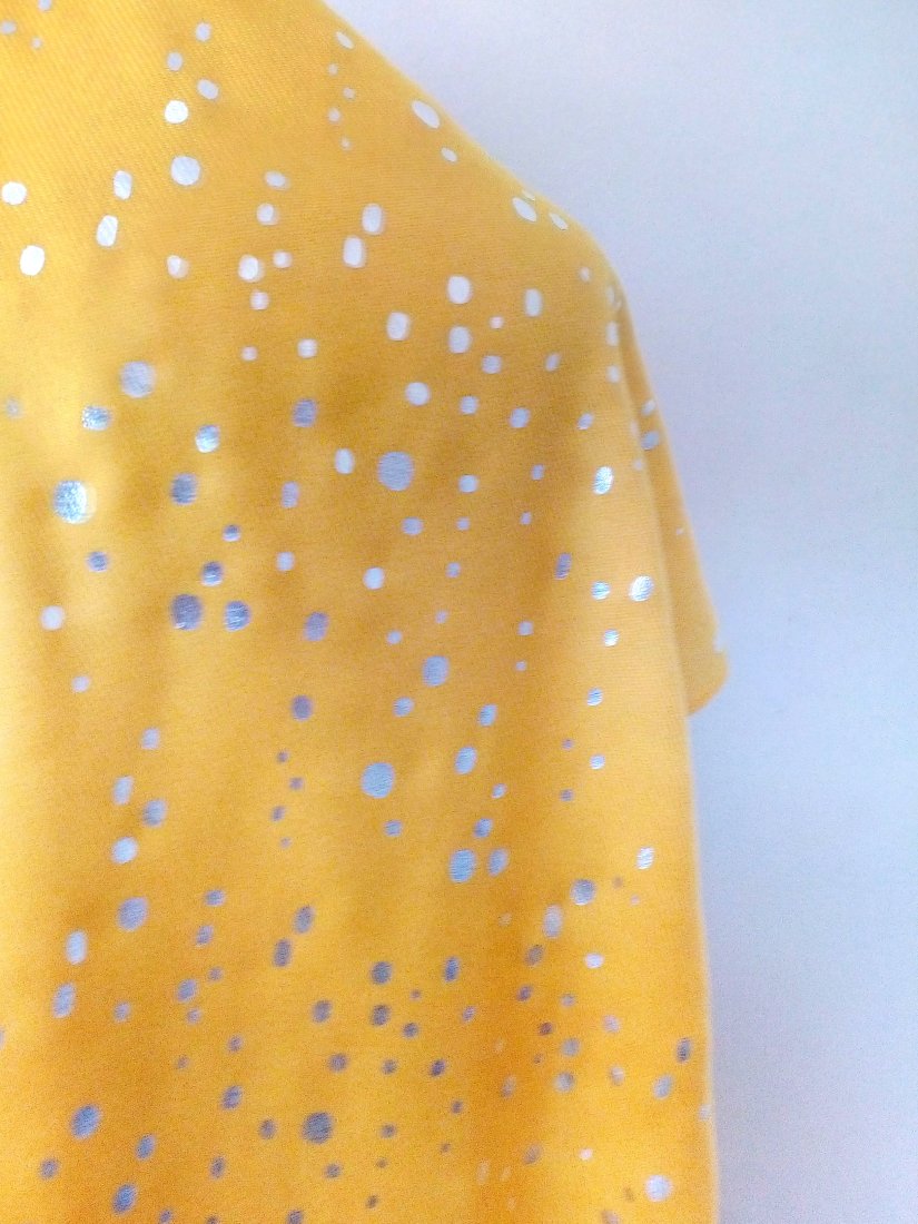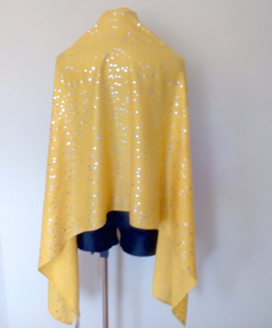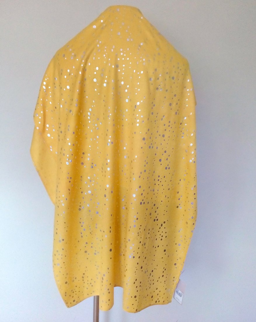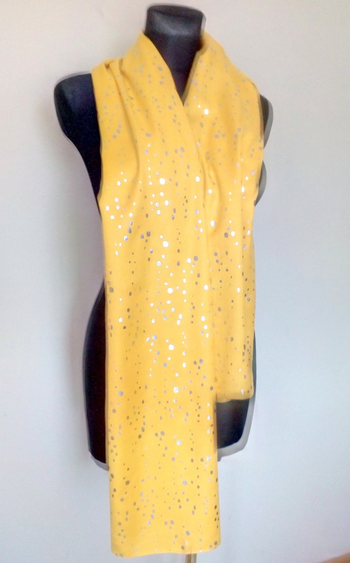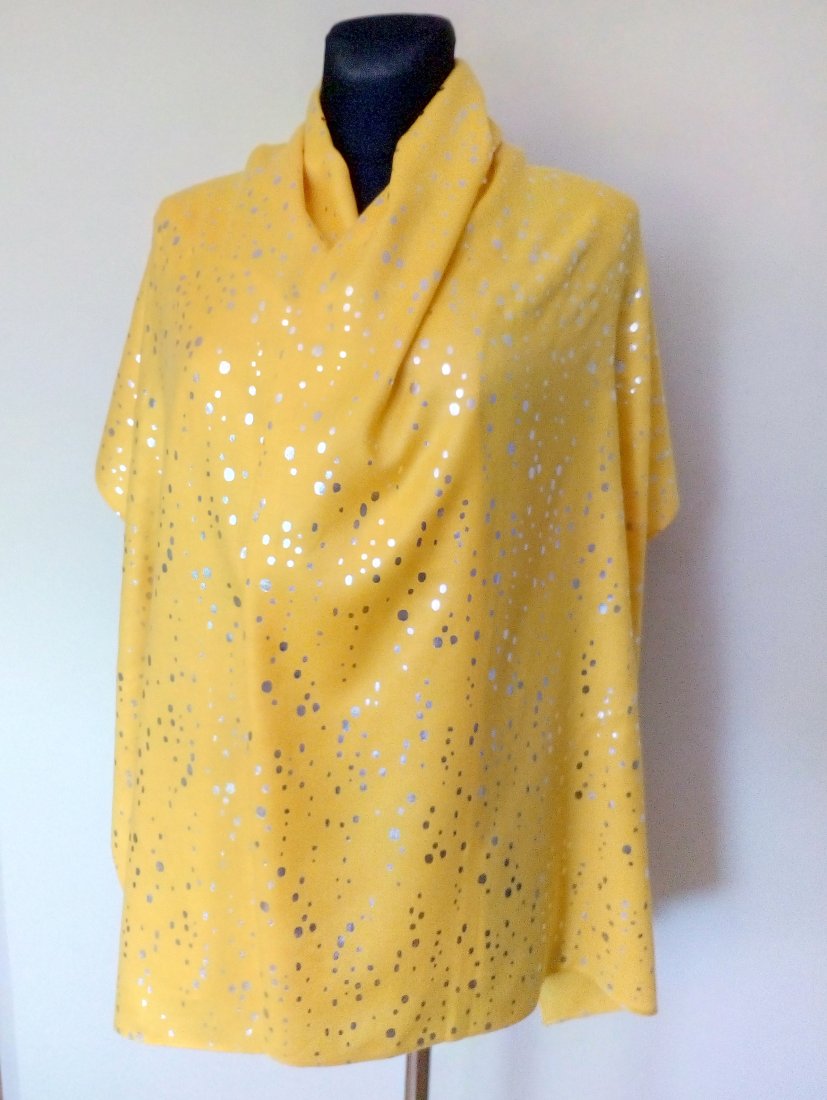 Nowy szal w żółtym, słonecznikowym kolorze, z jednej strony zdobiony srebrnymi plamkami