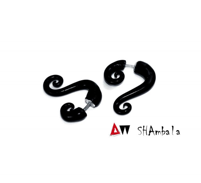 Intrygujące, etniczne kolczyki wykonane z tworzywa sztucznego i srebra. Niezwykle pomysłowe, fantazyjnie prezentują się na uchu. Głębia tkwi w ich prostocie. Gorąco polecam. Wymiary tulejek to ok. 2,3 cm na 3 cm. Gorąco polecam :)