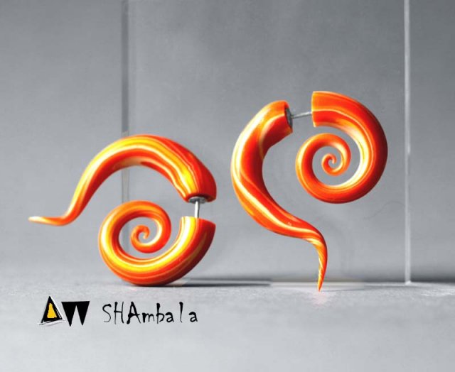 Intrygujące, etniczne kolczyki wykonane z tworzywa sztucznego i srebra. Niezwykle pomysłowe, fantazyjnie prezentują się na
