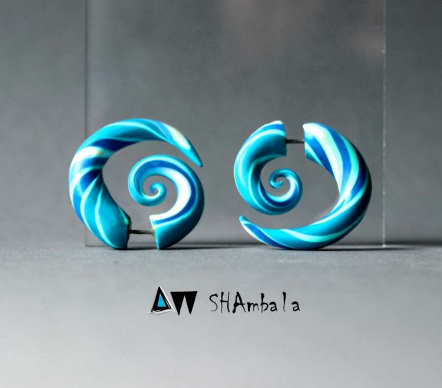 Intrygujące, etniczne kolczyki wykonane z tworzywa sztucznego i srebra. Niezwykle pomysłowe, fantazyjnie prezentują się na uchu.