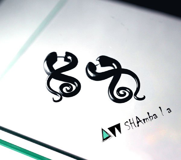 Intrygujące, etniczne kolczyki wykonane z tworzywa sztucznego i srebra. Niezwykle pomysłowe, fantazyjnie prezentują się na