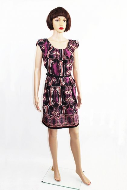 Urocza sukienka marki New Look w rozmiarze 40. Oryginalny ciekawy wzór i kolorystyka. Krój tulipana - zaszewki ozdobne kontrafałdy z przodu i z tyłu, efektowne przymarszczenie na dekoldzie i rękawkach. Szlufki na pasek Zapinana z tyłu na długi ekspres. Materiał 100% viskoza. Stan idealny - jak nowa