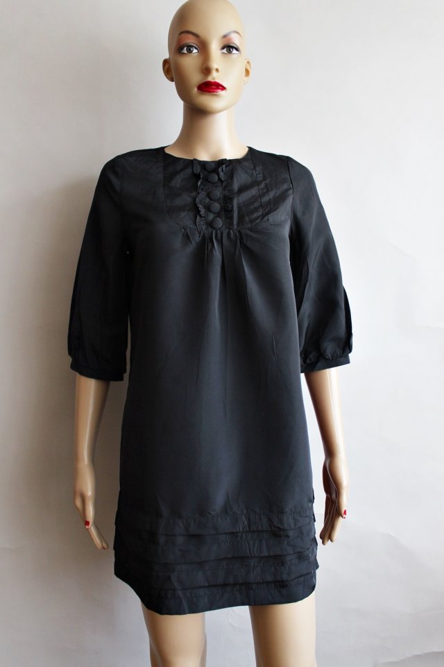 Czarna tunika u góry i na dole efektownie wykończona.