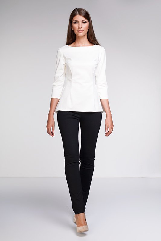 Tunika uszyta z elastycznej dzianiny wysokiej jakości w kolorze ecru. Fason dopasowany zaszewkami na przodzie i tyle. Boki na biodrach są poszerzone, dzięki czemu tunika przepięknie się układa na sylwetce. Rękawy 3/4, dekolt łódka. Długość z przodu około 65 cm, tył jest wydłużony o 5 cm. Polecam, jest super i w rzeczywistości wygląda jeszcze lepiej! :)