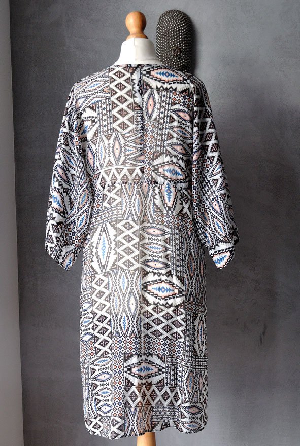 Tunika uszyta z nieco prześwitującego, miękkiego szyfonu w etniczny wzór. Projekt polskiej marki GREY WOLF.