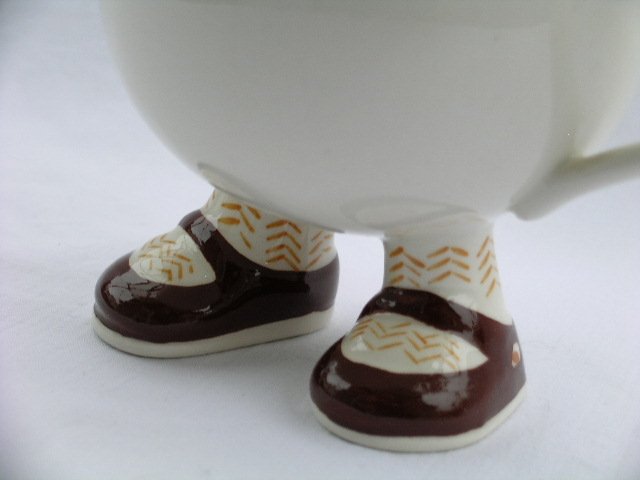 Zabawna porcelanowa filiżanka,wazonik na bucikowych stópkach :) Lekka, praktyczna, dobrze wykonana, sygnowana England. Z polotem i dla uśmiechu przy kawie, herbacie. Ręczne malowanie i błyszczące kraklowane szkliwienie. Średnica 8; szer. 11; wysokość 8,5 cm. Stan zachowania bardzo dobry.