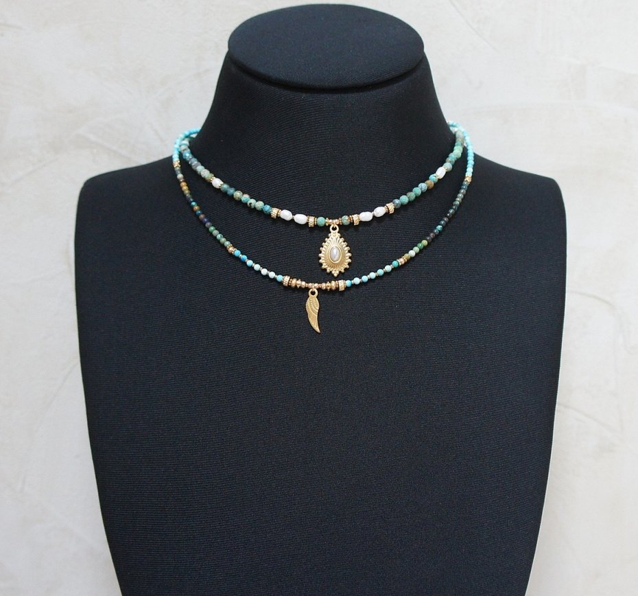 Naszyjniki etniczne, Naszyjniki ze sznurka, Naszyjniki z kamieniami