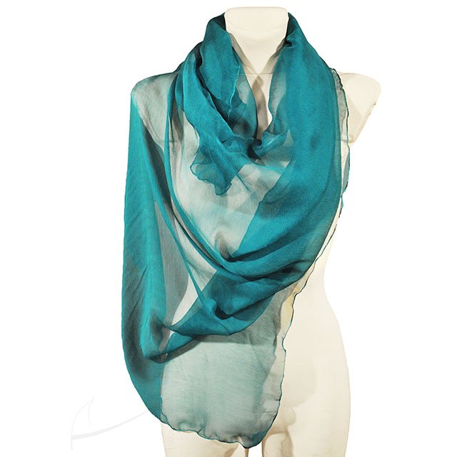 Piękny szal z turkusowego szyfonu jedwabnego.