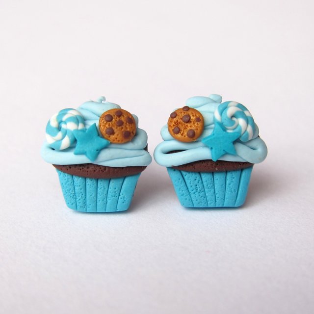 Zabawne kolorowe kolczyki wykonane ręcznie z masy termoutwardzalnej Fimo w kształcie niebieskich słodkości. Wielkość kolczyków to ok. 12 mm. Sztyfty wykonane są ze stali chirurgicznej. Kolczyki świetne na prezent. Zobacz moją całą galerię w Decobazaar!