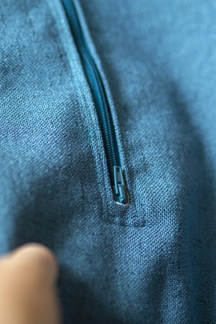 Średniej wielkości torebka w stylu boho. Worek zapinany na suwak z okrągłym, usztywnianym dnem wykonany z turkusowej tkaniny oraz miodowego weluru. Granatowe paski.