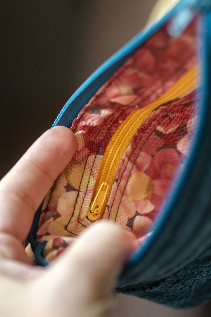 Idealny na karty płatnicze oraz pieniądze. Zapinany na suwak, z przodu kieszonka na drobne, w środku bawełniana podszewka i kieszonka na suwak.