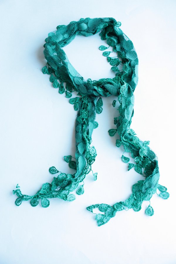 Szal o niezwykłej ażurowej fakturze i kolorze (mocny, twarzowy turkus).