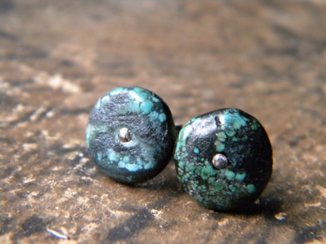kolczyki.oksydowane srebro 925 i turkusy. średnica 1,1cm.