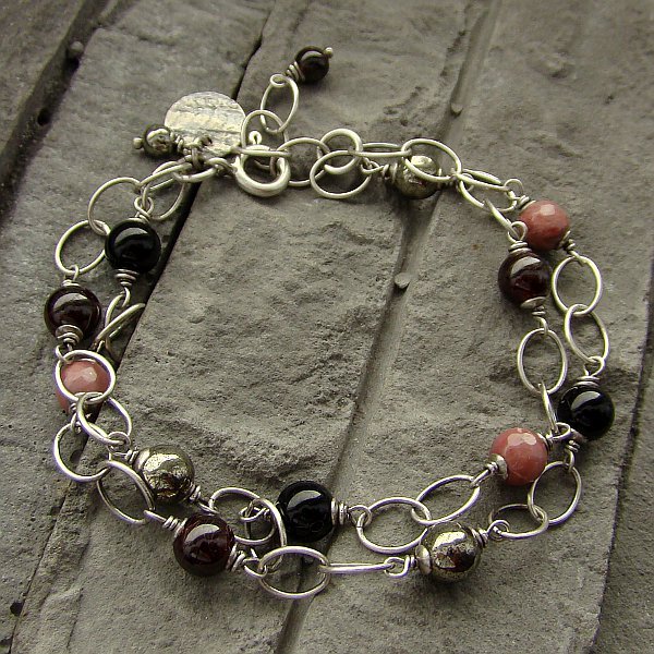 TURMALIN, RODONIT, GRANAT, PIRYT - BRANSOLETKA