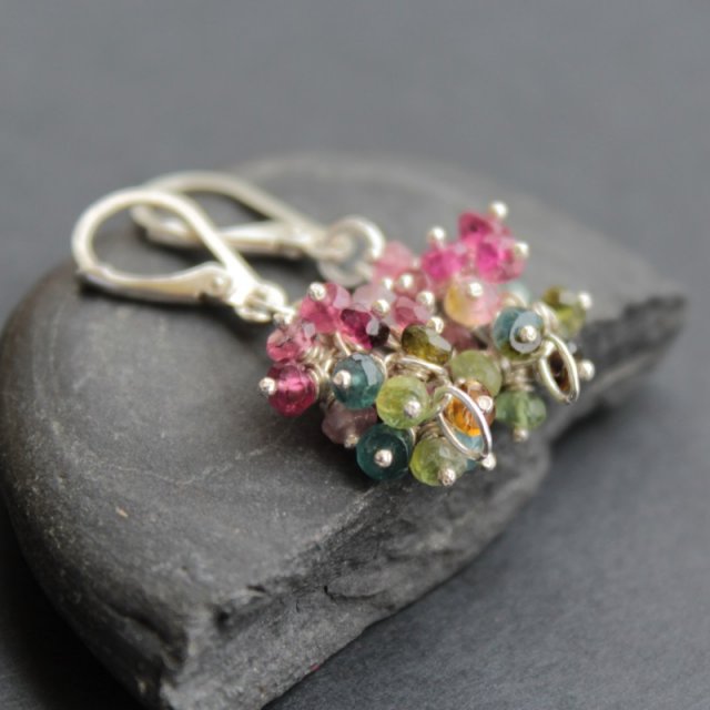 Delikatne kolczyki wykonane zostały ze srebra próby 925 oraz fasetowanych turmalinów ( 0,2 - 0,4 cm ). Bigle angielskie. Długość całkowita kolczyków 3,6 cm. POLECAM!