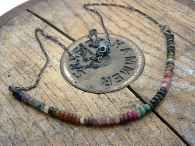 Naszyjnik z turmalinów (5mm) i oksydowanego srebra 925.