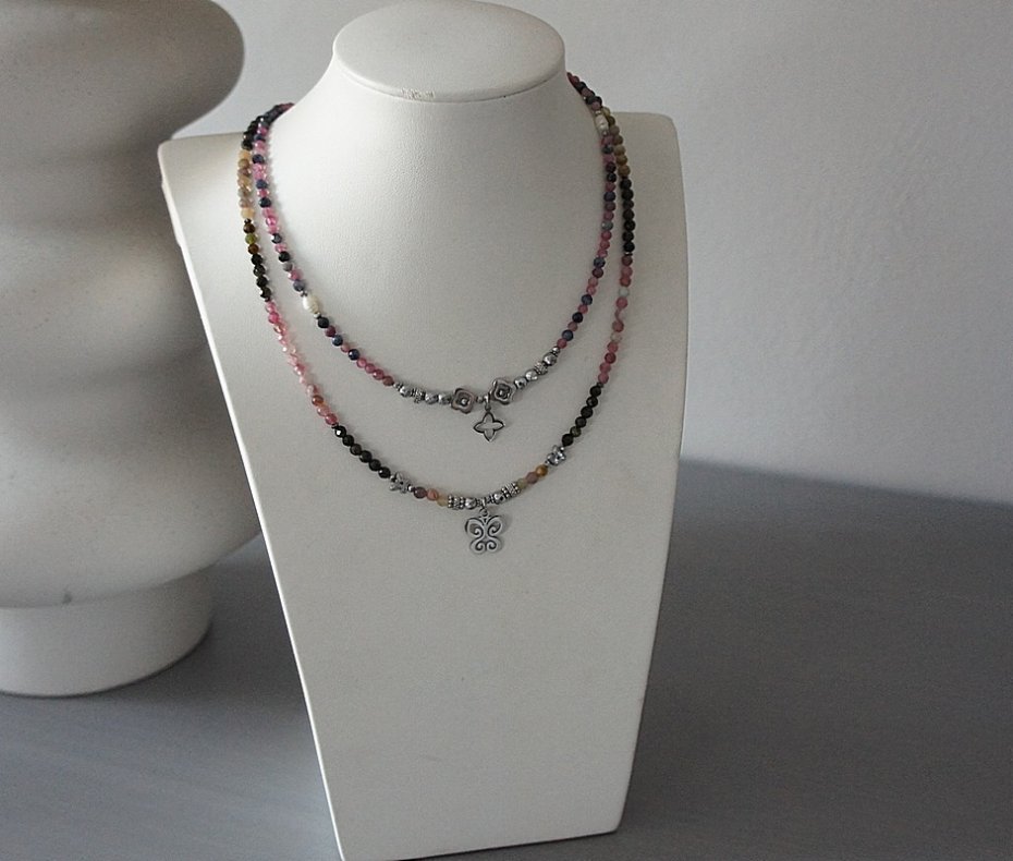 DELIKATNY NASZYJNIK Z RÓŻOWEGO TURMALINU I SPINELU
