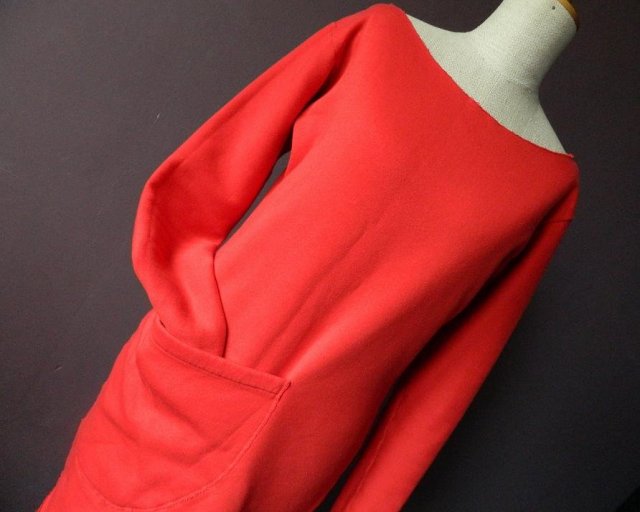 TUNIKA / SUKIENKA tutte - dresowa dosyć gruba dzianina, swobodny fason, duża kieszeń na prawym boku, surowe wykończenie, długi wąski rękaw, dekolt łódka, kolor pomiędzy pomarańczem a czerwienią (intensywny).