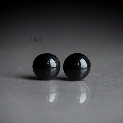 Ceramiczne okrągłe kolczyki w formie sztyftów, ręcznie wykonane z delikatnej czekoladowobrązowej gliny kamionkowej, jednostronnie szkliwione mieszanką czarnych szkliw z efektem plamek, na antyalergicznych sztyftach w kolorze srebrnym. Średnica ok. 9mm. Polecam