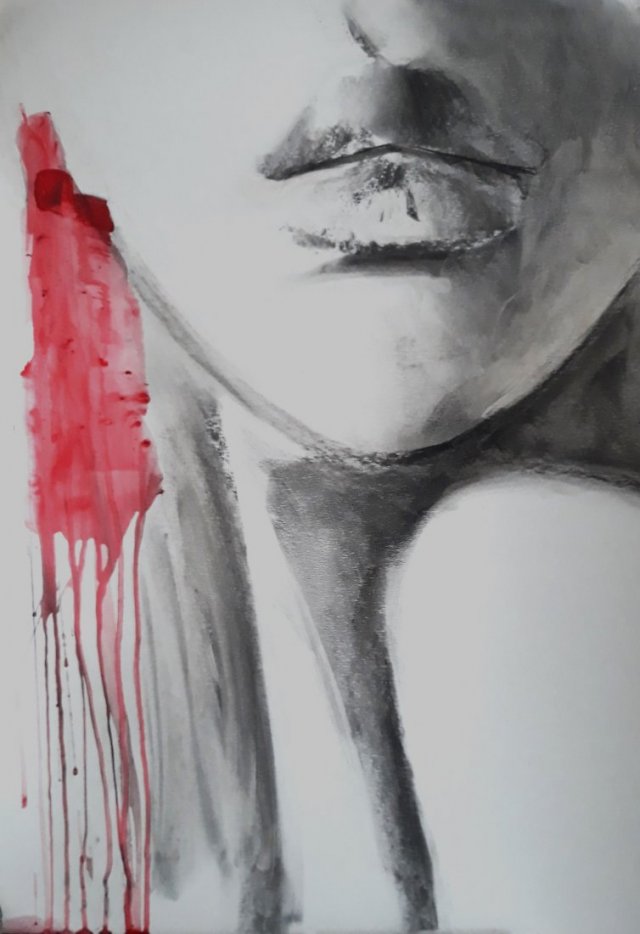 Rysunek w technice węgla i farby na ciepłej bieli brystolu kredowego.