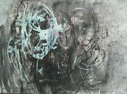 Rysunek wykonany techniką mieszaną (tusz, węgiel, farba)