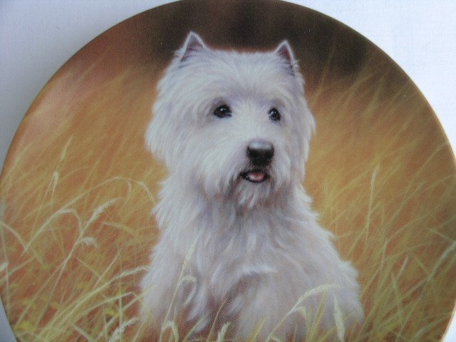 Kolekcjonerski talerz porcelanowy, sygnowany Royal Worcester. Seria z wizerunkami Westies autorstwa Johna Silvera. Wysoka jakość. 19 x 2 cm. Stan zachowania idealny.