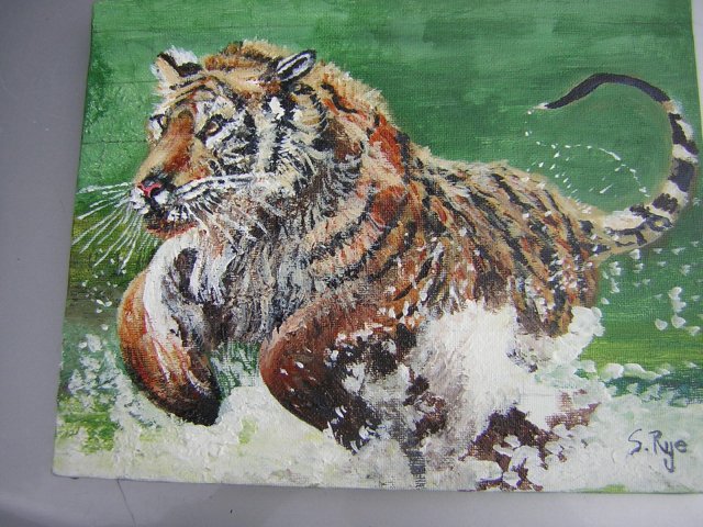 Oryginał na płótnie malowany obraz olejny. Nie Oprawiony, sygnowany S. RYE. Kolory wyraziste, fakturowy tygrys jako żywy; )