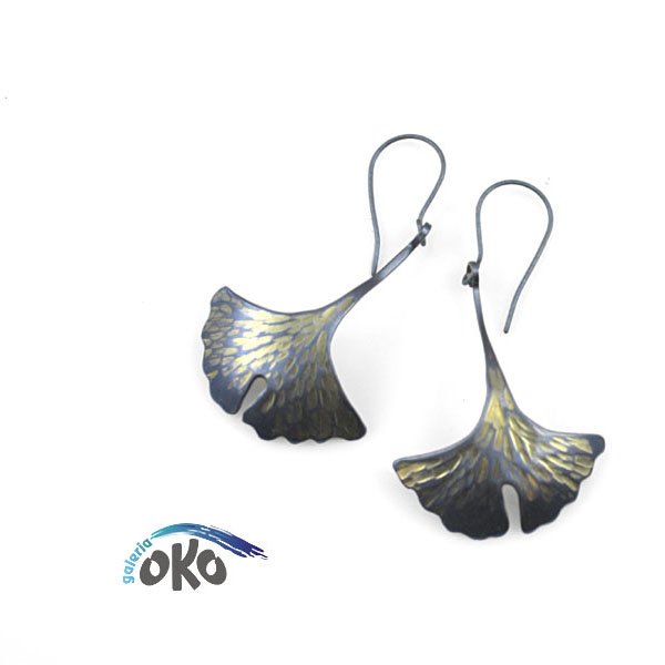Kolczyki zrobiłem ręcznie w całości z tytanu.Kolczyki w kształcie liści miłorzębu są repusowane i grawerowane.Długość 5,5 cm a szerokość listka to 2,8 cm.Sygnowane autografem wygrawerowanym na odwrocie.Do każdej pary dodaję zapas zatyczek.