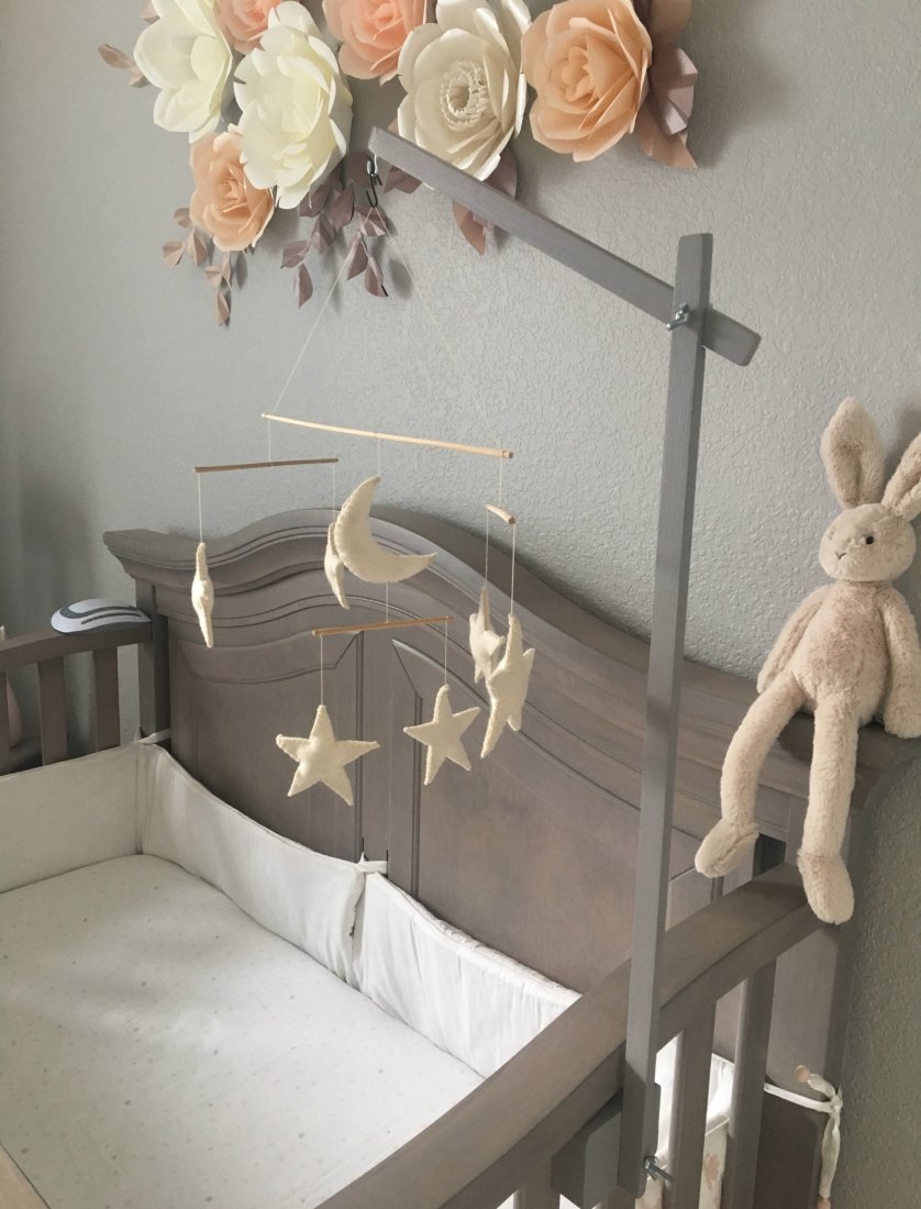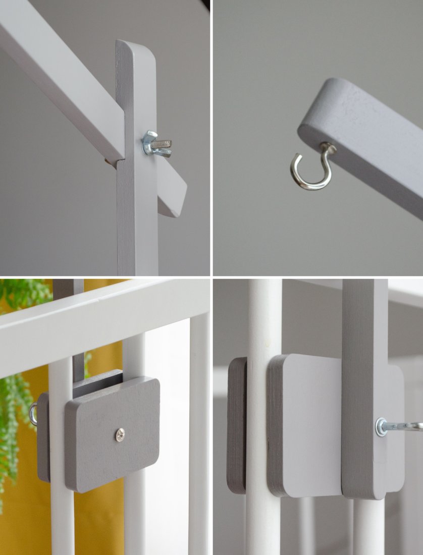 Lekki, składany i prosty w montażu – bez dodatkowych narzędzi. Minimalistyczny design podkreśli urok każdej ręcznie robionej karuzelki, a ekologiczny materiał z olejem lnianym lub farbą bez zapachu dba o komfort dziecka.