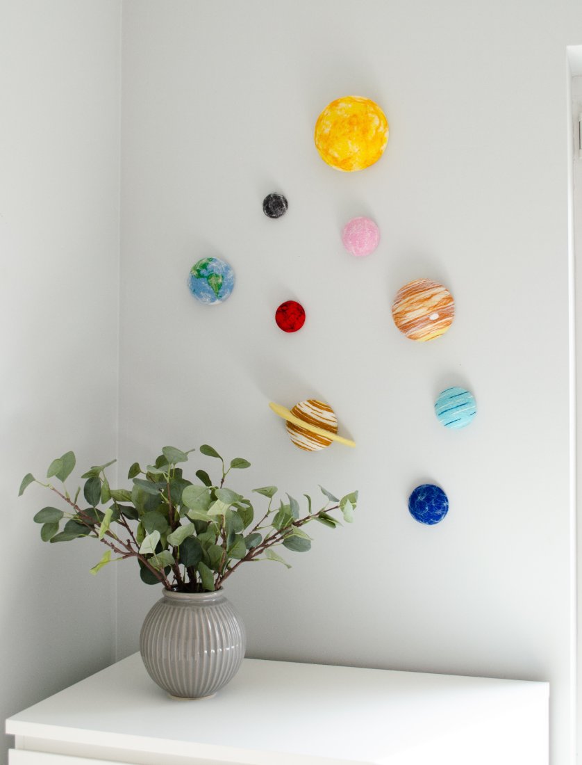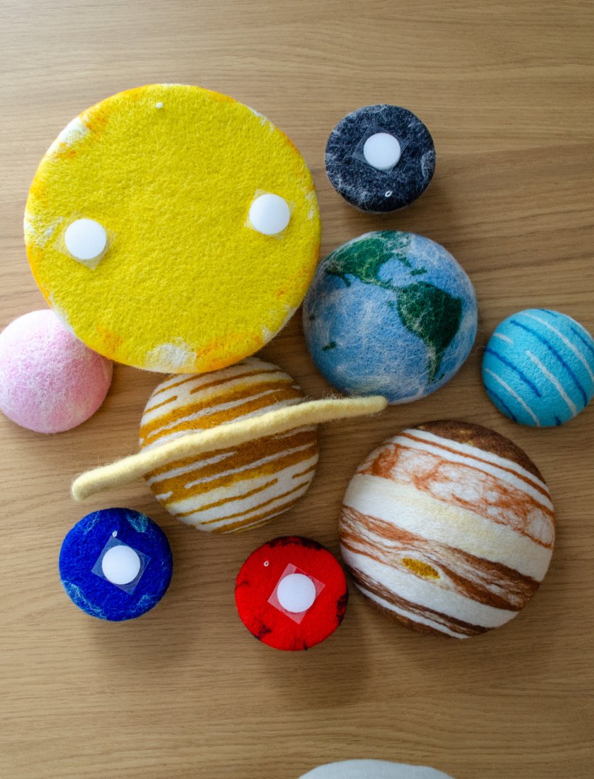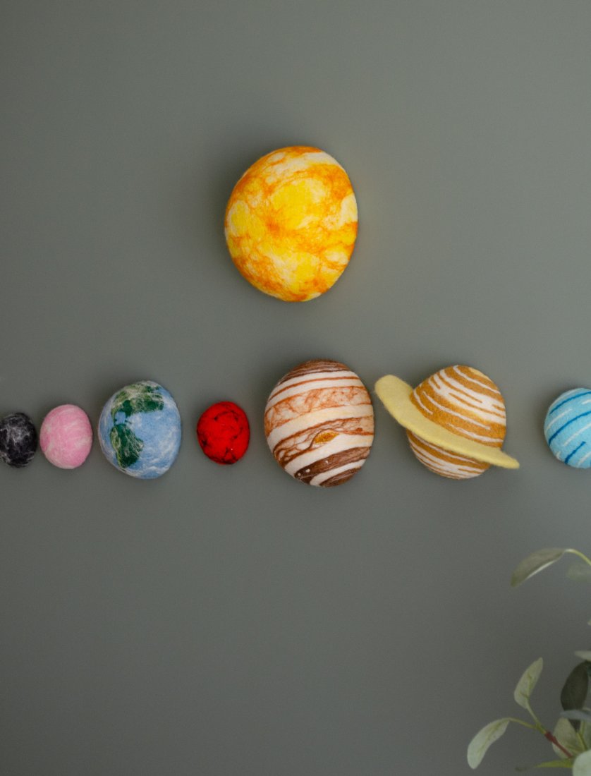 Filcowe planety układu słonecznego to wyjątkowa ozdoba ścienna do pokoju dziecka. Proste kształty i kontrastowe kolory przyciągają uwagę i rozwijają wyobraźnię, wprowadzając do wnętrza kosmiczny klimat.