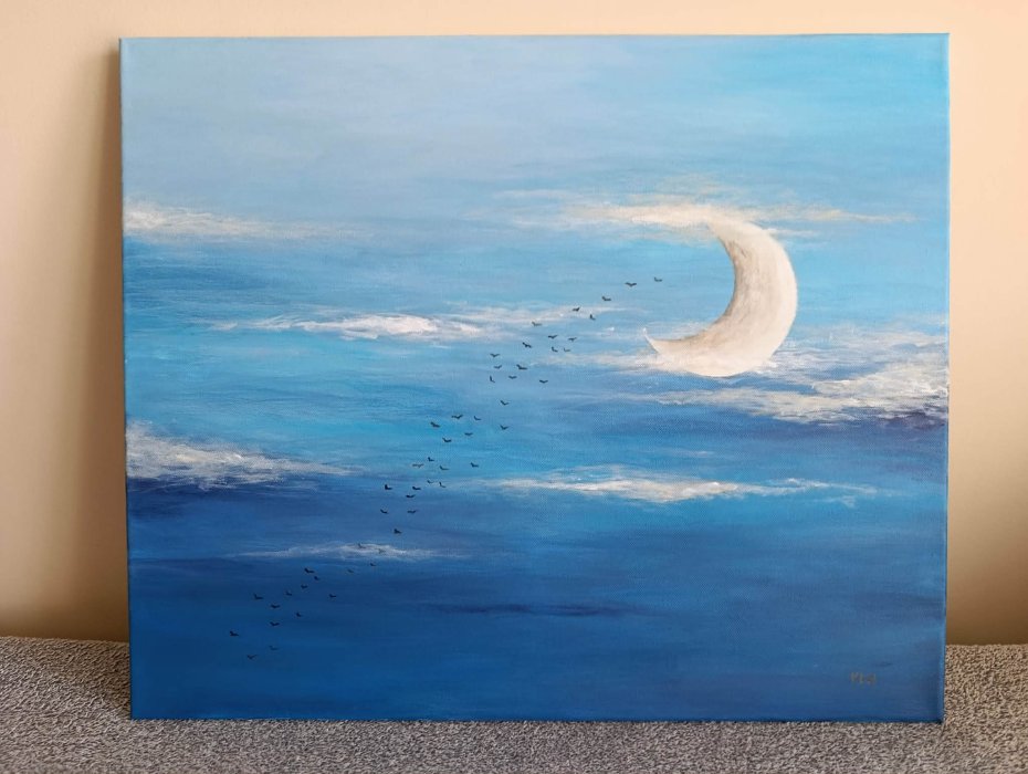Obraz namalowany w technice akrylowej na płótnie o wymiarach 60/50 cm. Obraz posiada pomalowane boki. Nadaje się od razu do powieszenia na ścianie. Obraz jest sygnowany, sprzedawany bez oprawy. Zapraszam:)