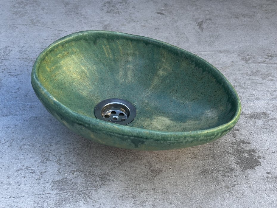 Umywalka z gliny wykonana od podstaw ręcznie, funkcjonalny element łazienki, który nada wnętrzu indywidualnego charakteru. Łatwa w czyszczeniu, odporna na detergenty. Przystosowana do montażu na szafce lub blacie, ze względu na rozmiary pozwala na oszczędność miejsca oraz większe możliwości w projektowaniu pomieszczenia.