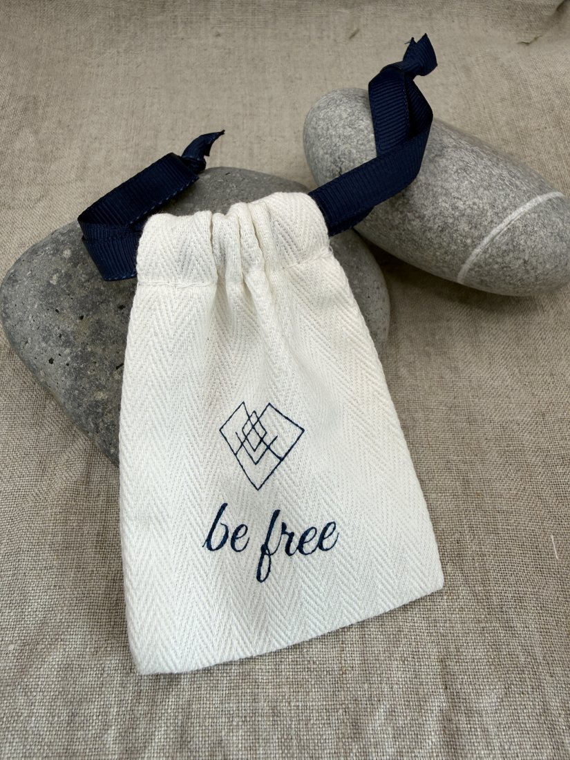 Wysyłam zapakowaną w bawełniany woreczek z logo marki.
