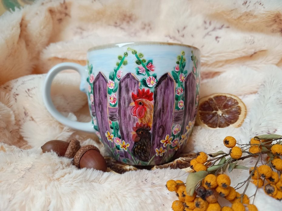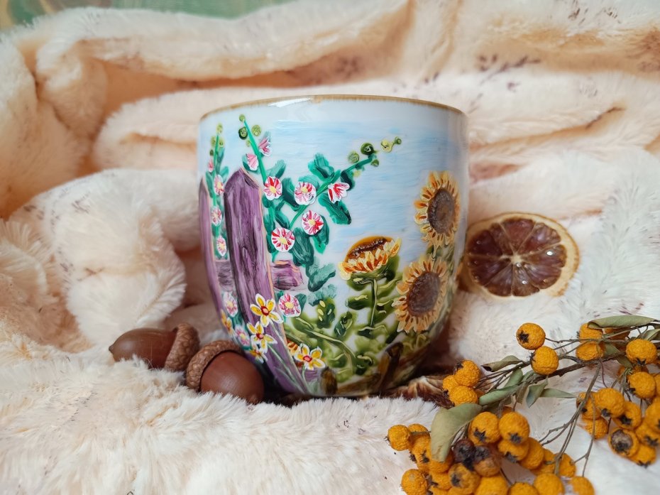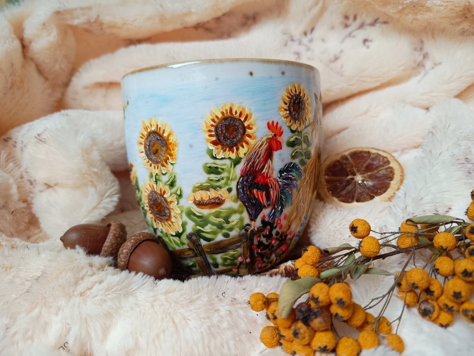 Kubek malowany wiele, wiele godzin z wielką troską o wszelkie szczegóły z miłości do natury, z miłości do tego co piękne i ulotne..