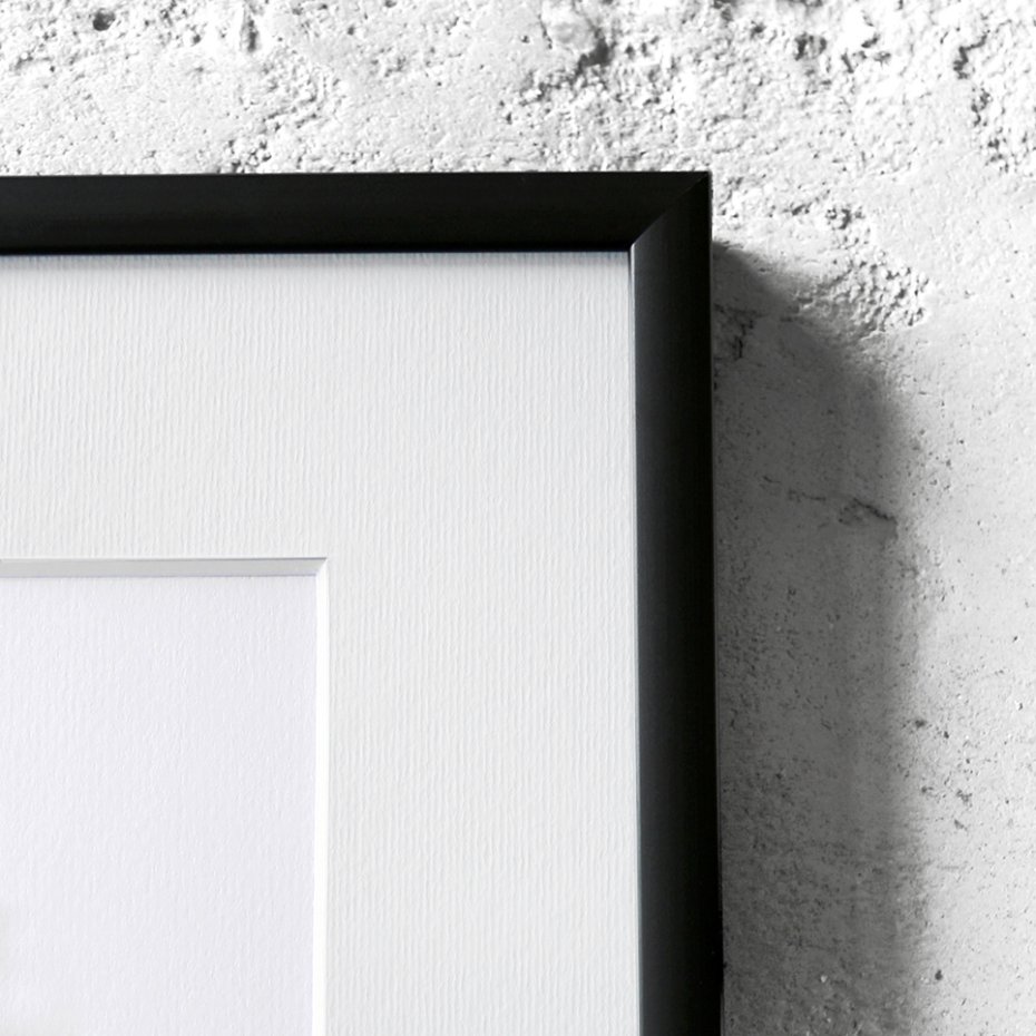 - rysunek oprawiony w białe passe partout i czarną, aluminiową ramę