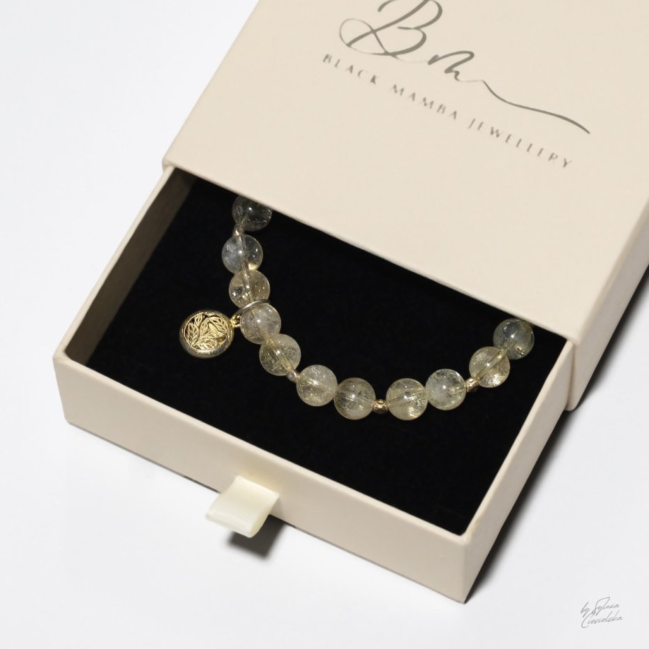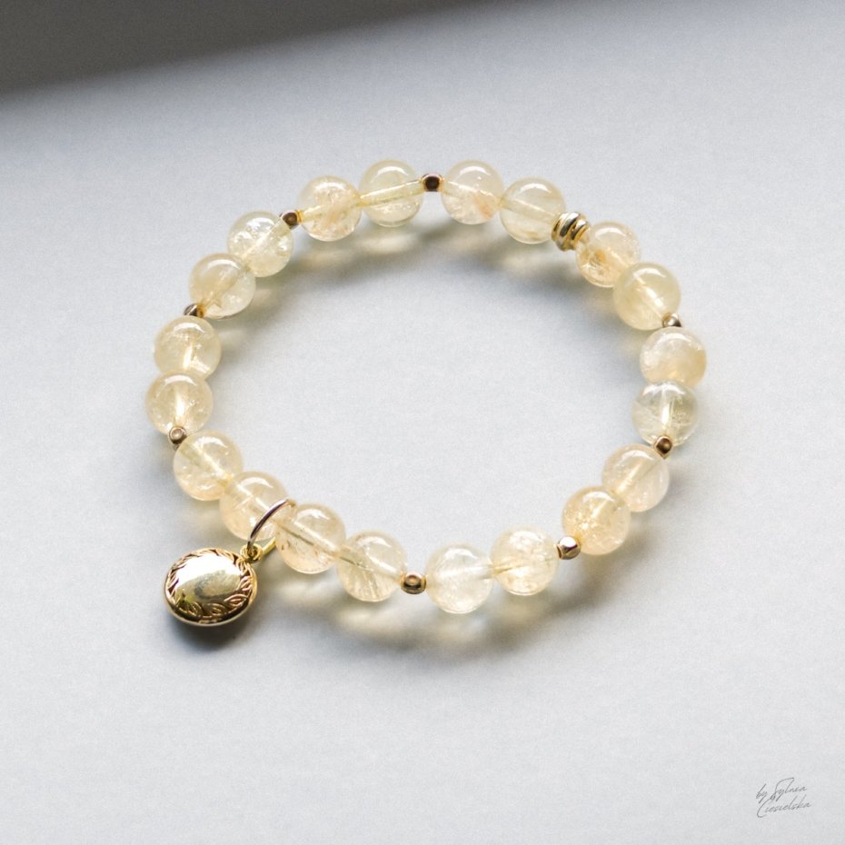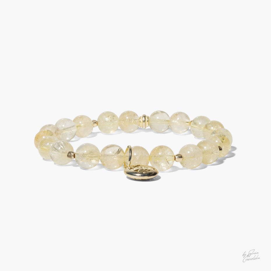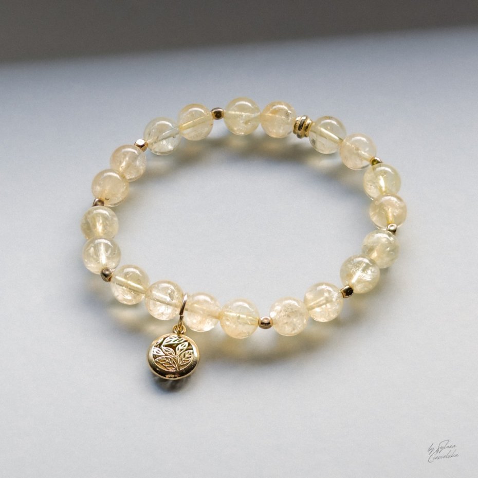 Bransoletka została wzbogacona o detale z pozłacanego srebra próby 925, które nadają jej szlachetnego charakteru i subtelnego blasku. Złociste akcenty idealnie współgrają z naturalnym cytrynem, podkreślając jego barwę i ekskluzywny styl biżuterii. To połączenie sprawia, że całość prezentuje się elegancko, a jednocześnie pozostaje lekka i wygodna w noszeniu na co dzień.