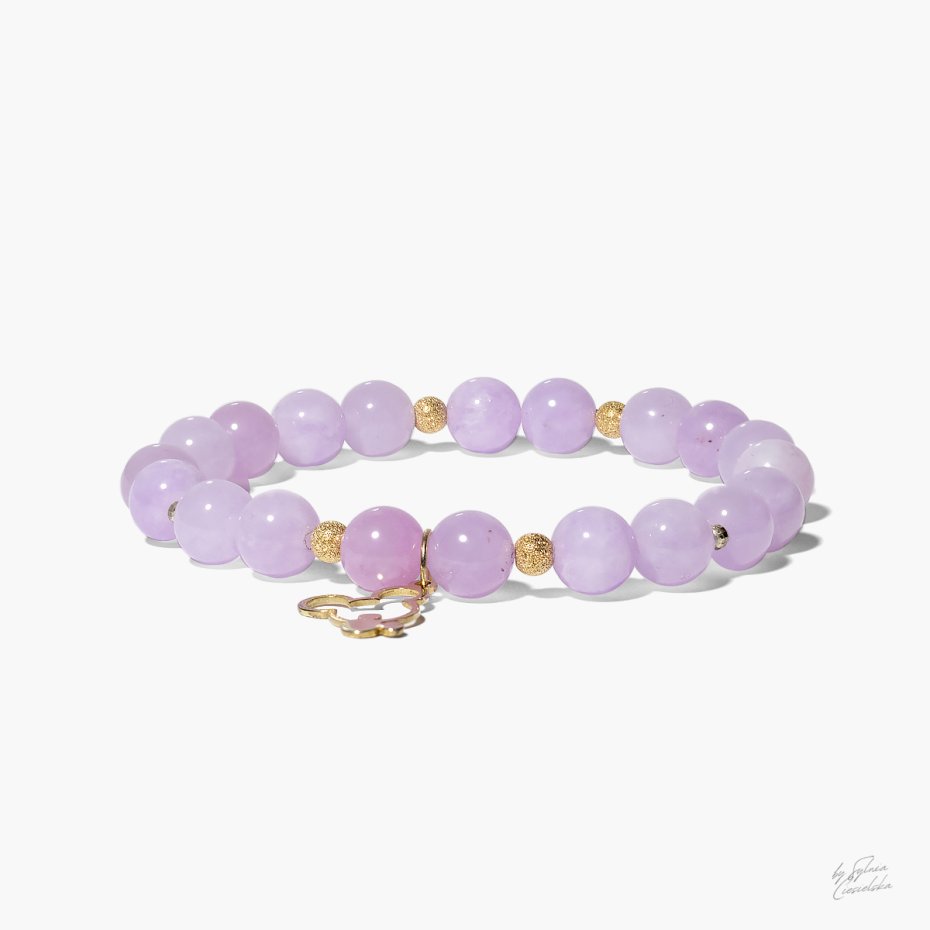 Bransoletka została wykonana z najwyższej jakości srebra 925, pokrytego trwałą warstwą złocenia, co dodaje jej wykwintnego blasku i podkreśla luksusowy charakter. Pozłacane kulki idealnie współgrają z pastelowym jadeitem, tworząc kompozycję pełną lekkości, elegancji i kobiecego wdzięku. Każdy detal został starannie dopracowany, aby zapewnić produkt piękny, trwały i wyjątkowo komfortowy w noszeniu.
