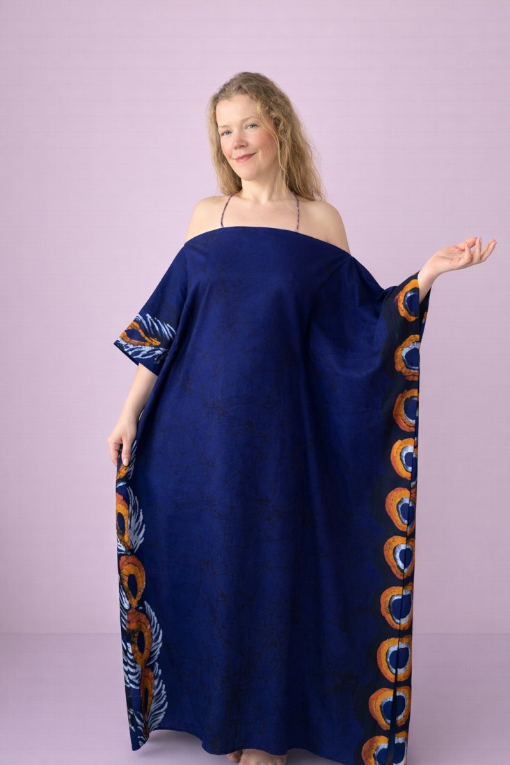 Bawełna oddycha razem z Tobą. Ruch tkaniny otula, nie ogranicza. Ręcznie malowany batik pulsuje jak serce: naturalnie, nieregularnie, prawdziwie.